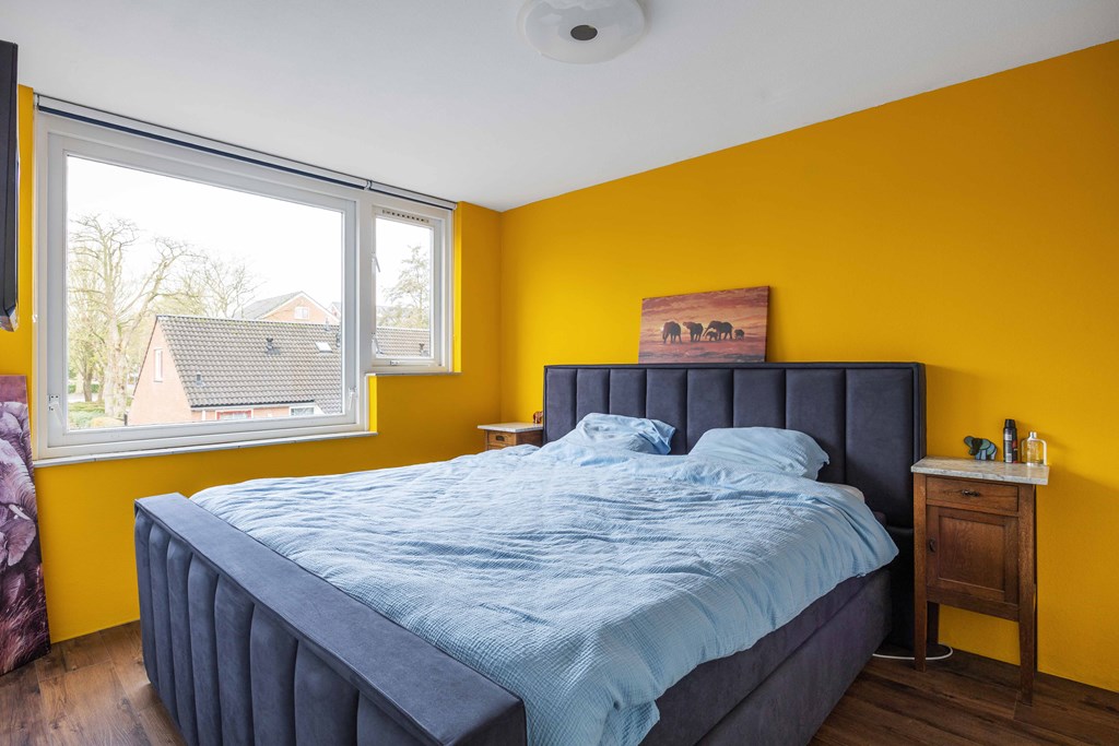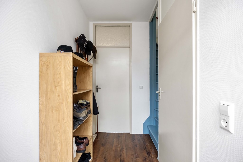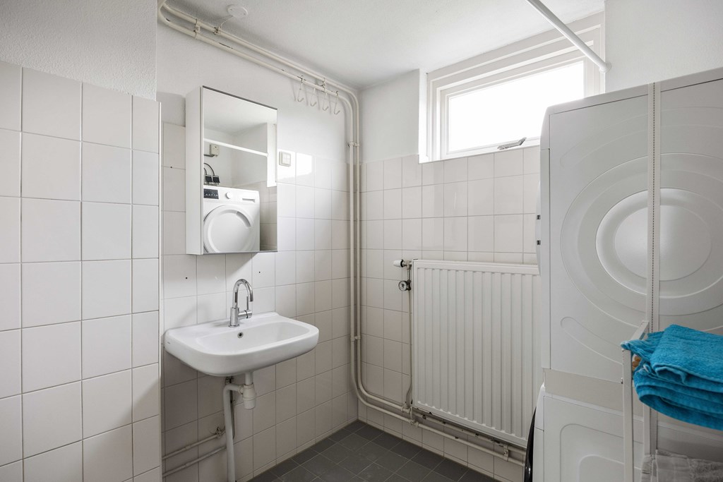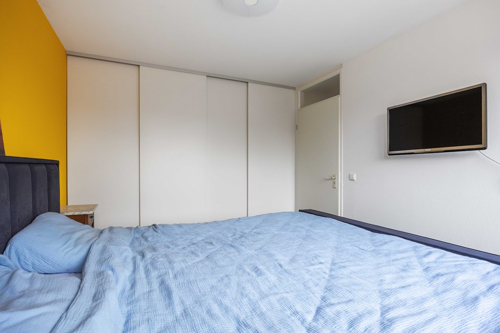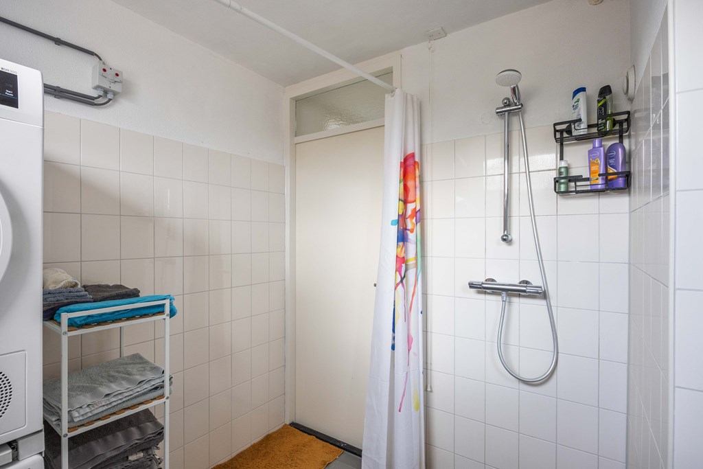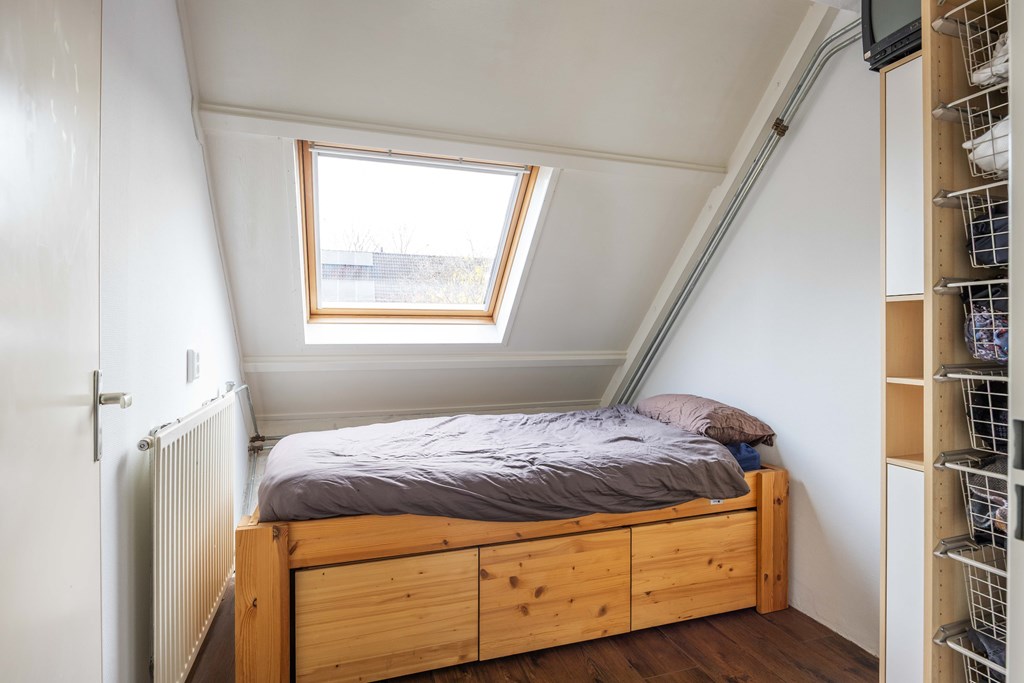 Overloop met toegang tot drie slaapkamers; aan de voorzijde de grootste slaapkamer, aan de achterzijde twee slaapkamers elke met een dakraam. Verder vind je op de eerste verdieping de badkamer voorzien van douche, wastafel en wasmachine aansluiting. Ook is er op de verdieping een bergkast met cv-opstelplaats en mechanische ventilatie box.