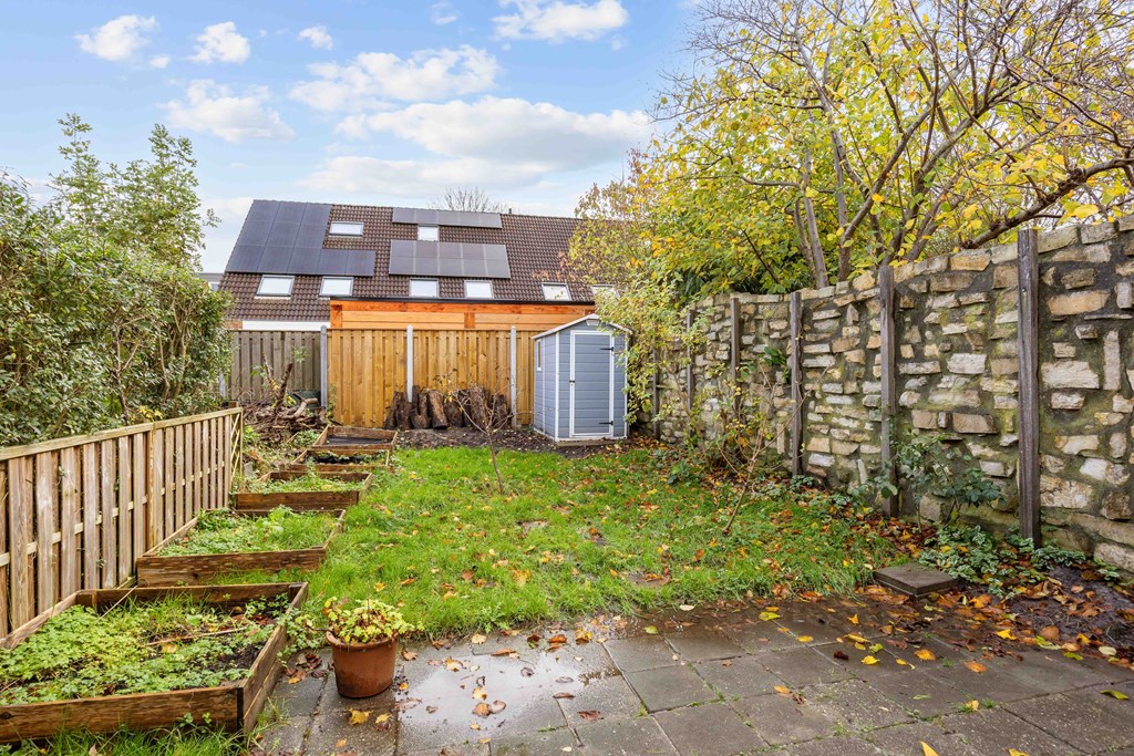 De voortuin is onderhoudsvriendelijk en volledig bestraat met een opstelplaats voor containers. Verder vind je hier een praktische stenen berging, welke ruimte biedt voor het opbergen van je fietsen, gereedschap of hobbyspullen. De achtertuin is te bereiken middels woonkamerdeur en is gelegen op het oosten. Aan de achtergevel is een terras en achter in de tuin een tuinhuisje welke handig is voor het opbergen van je tuingereedschap.