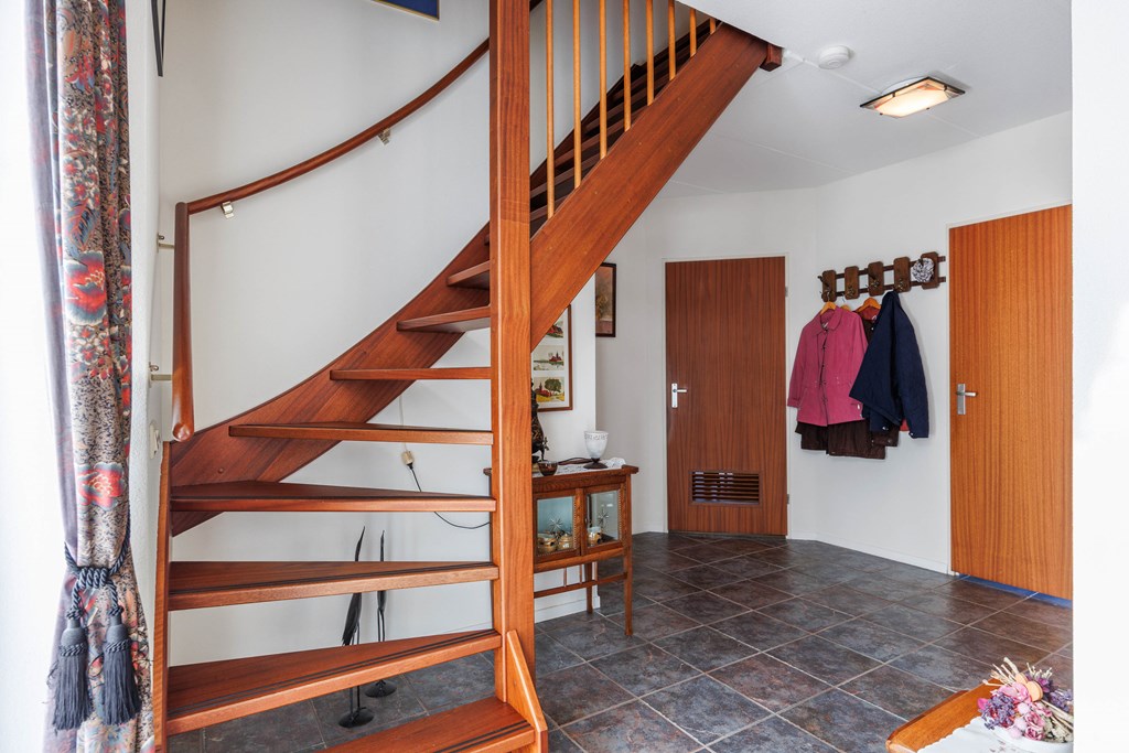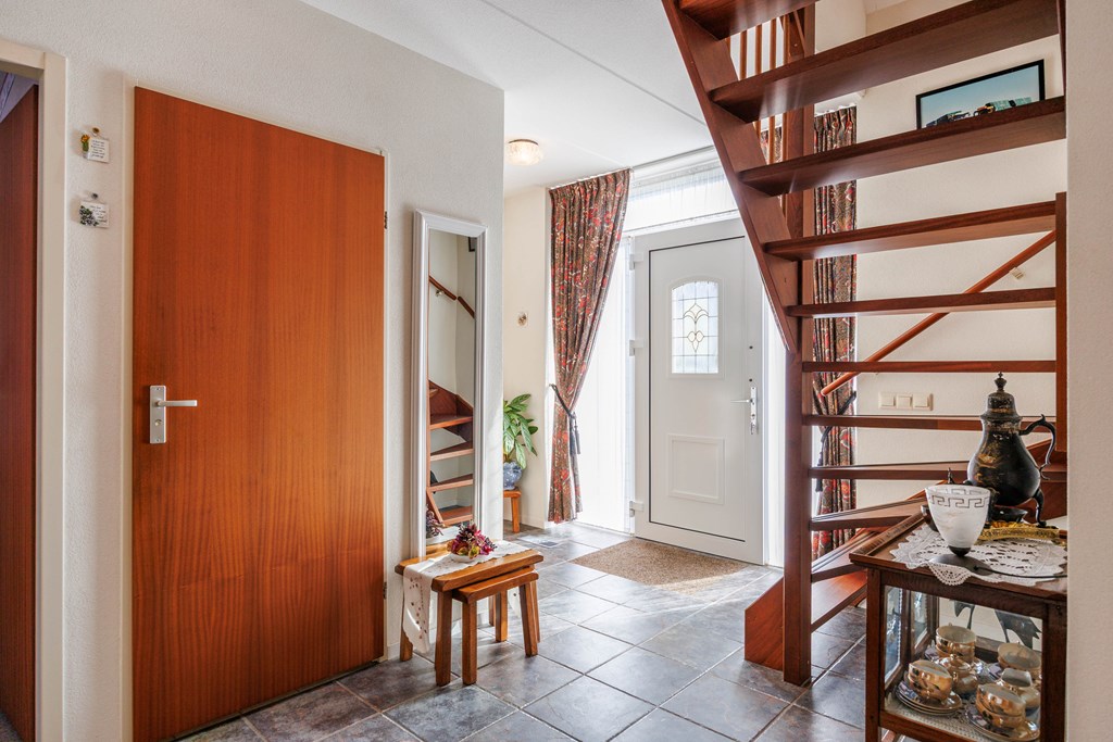 Binnenkomst met ruimte en mogelijkheden.. Zodra je de hal/entree binnenstapt, valt meteen op hoeveel licht en ruimte er is. Een meterkast, een nette toiletruimte voorzien van fontein, en natuurlijk de trapopgang naar de verdieping. Vervolgens loop je door naar de woonkamer, dan zie je precies waarom dit de plek is waar het hele gezin tot rust komt. Dankzij de L-vorm en de grote schuifpui geniet je áltijd van volop lichtinval. ’s Winters kruip je samen voor de haard. In de zomer zet je de schuifpui wijd open en trek je de tuin gewoon lekker bij de kamer. Gezellig barbecueën, tuinfeestjes of kinderen die ravotten, hier vind je de ruimte voor al je dromen! De open keuken is heerlijke plek om in te werken. De massieve, eigentijdse opstelling straalt kwaliteit uit en is van diverse gemakken voorzien. Je hebt een inductiekookplaat, afzuiging en een handige koeler tot je beschikking! Wat deze woning extra praktisch maakt, is de bijkeuken. Hier vind je de aansluitingen voor je wasmachine en droger – die stapel wasgoed is zo weggewerkt! Maar ook een waterontharder (weg met kalkaanslag!) en de achterentree. Vooral met kinderen of een hond ideaal: vieze schoenen en jassen blijven lekker buiten de woonkamer. Op de begane grond zijn er twee slaapkamers; ideaal voor jonge kinderen, een thuiskantoor of als royale logeerkamer. De badkamer – uitgerust met douche en wastafel – en het separate toilet zorgen voor dagelijkse comfort, zonder gedoe.